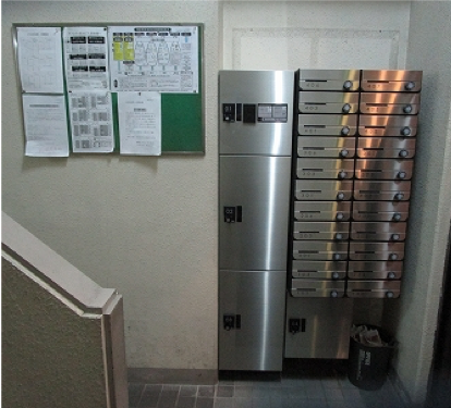 既存の集合ポストを撤去し、新しく集合ポスト、宅配ボックスを設置しました。 こちらは施工前の写真です。