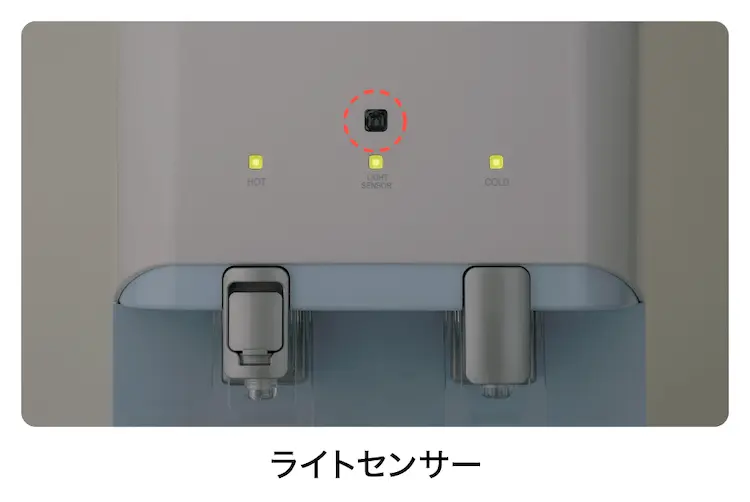 部屋の明るさを感知するセンサーを搭載し、周囲が暗くなると温水をOFFにし、
