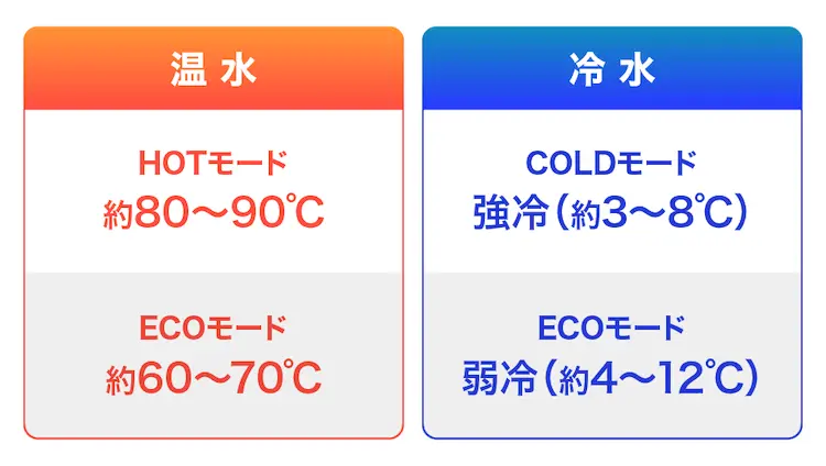 冷水温度・温水温度 冷水:約3~8℃